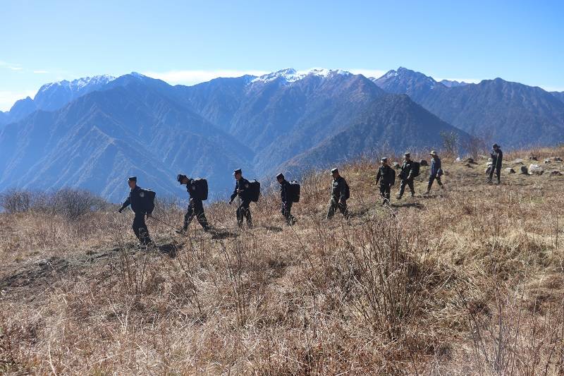 为深入贯彻落实习近平总书记对高黎贡山生物生态安全风险防范和保护工作重要批示精神。11月28日,由称杆边境派出所、堵堵洛村联防所、堵堵洛村护边员组成的巡护小队,对高黎贡山腹地生态环境开展巡护巡查,这是今年来开展的第四次中缅边境高黎贡山巡逻踏查,队员人均负重30多斤,一路跋山涉水,徒步约30公里,历时10个小时,圆满完成了此次巡护任务。