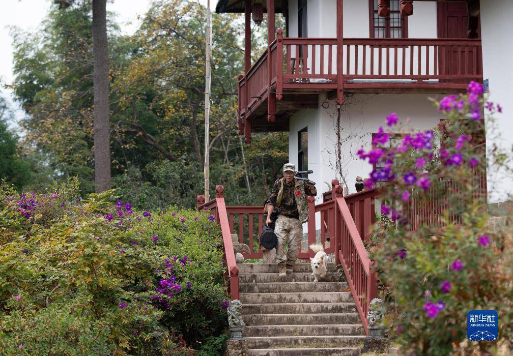 在永泰县嵩口镇大喜村陈坑自然村的“鹇来谷”观鸟摄影基地,陈林扛着摄影器材准备出门拍摄(11月30日摄)。
