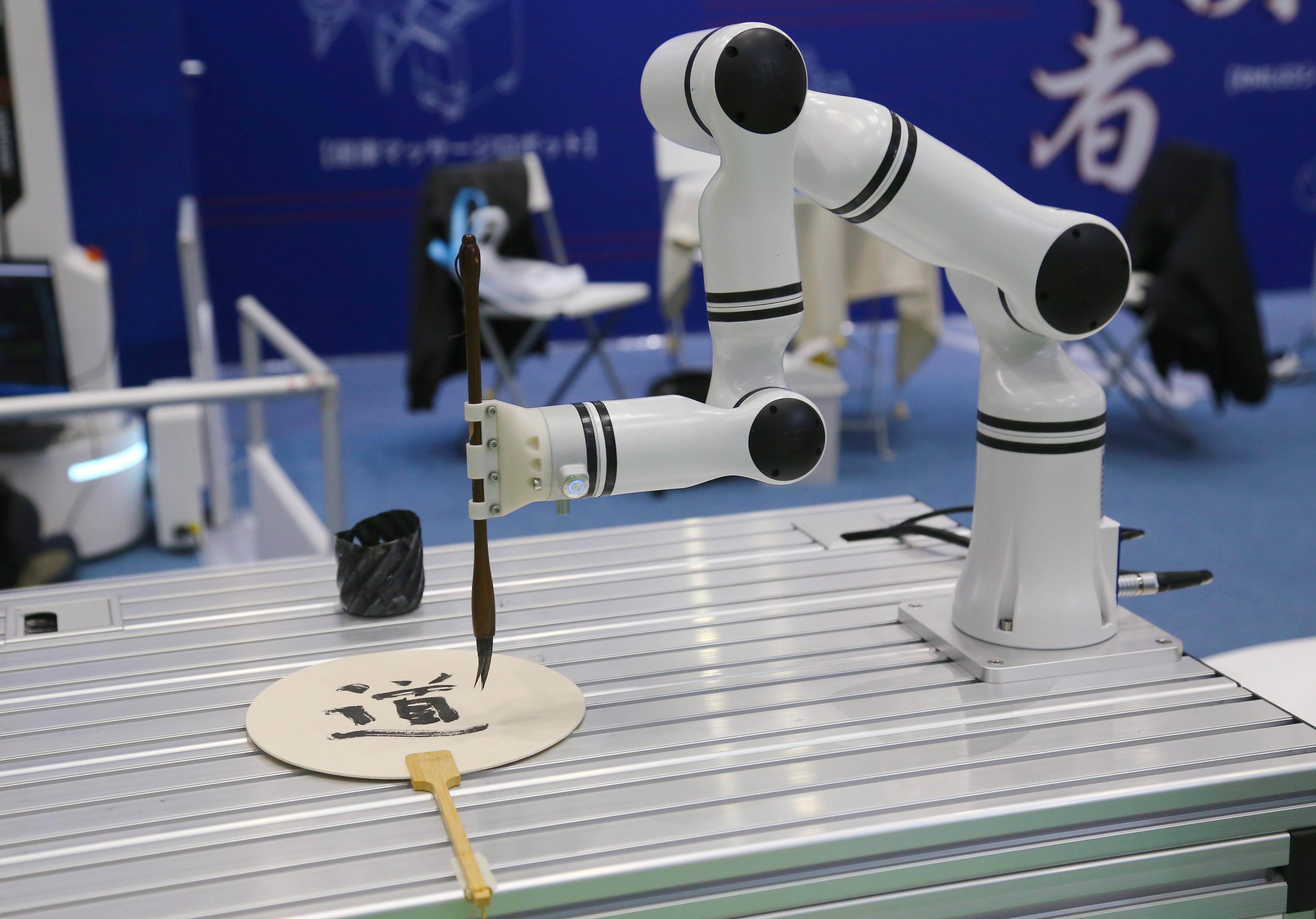 这是11月30日在日本东京举办的日本国际机器人展上拍摄的一款会写书法的智能机器人。 新华社记者 钱铮 摄