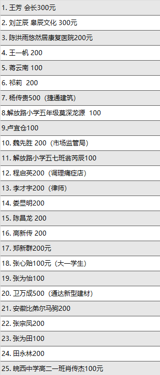 爱心捐赠明细
