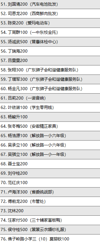 原标题:感恩有您!六安市爱心妈妈公益协会慈善一日捐 捐款鸣谢名单