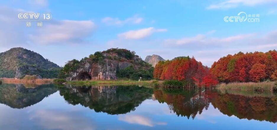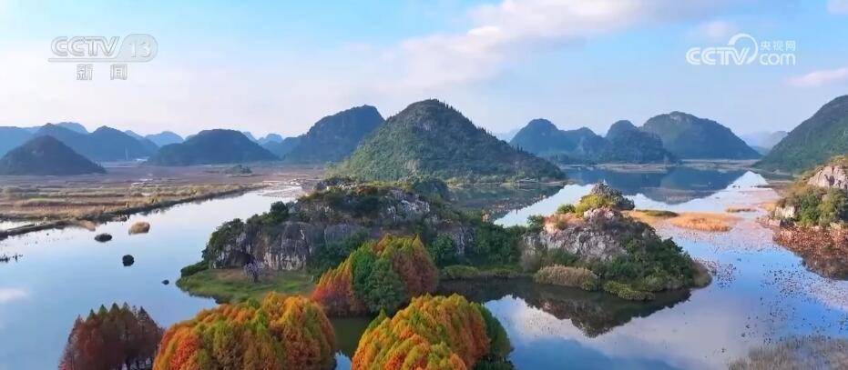 从11月中旬开始,在云南文山州丘北县的普者黑喀斯特国家湿地公园,水杉渐次换上彩装,放眼望去,层林尽染,与秀美的山水构成一幅冬日画卷。普者黑喀斯特湿地属珠江流域西江水系上游,是由湖泊、河流、峰林等构成的复合生态系统。