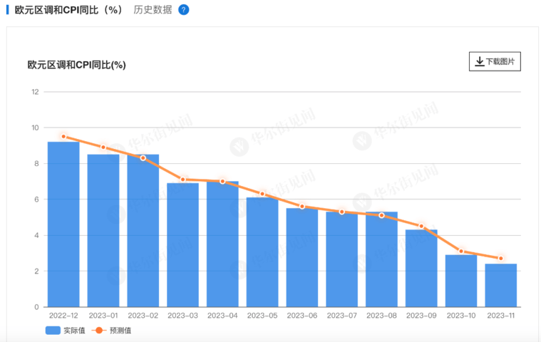 10月,多国通胀数据低于预期,较年初峰值明显下降。最新的数据更是引人注目:11月份的欧元区通胀数据跌至2.4%,远低于10.6%的峰值,这一跌幅超出了市场共识。