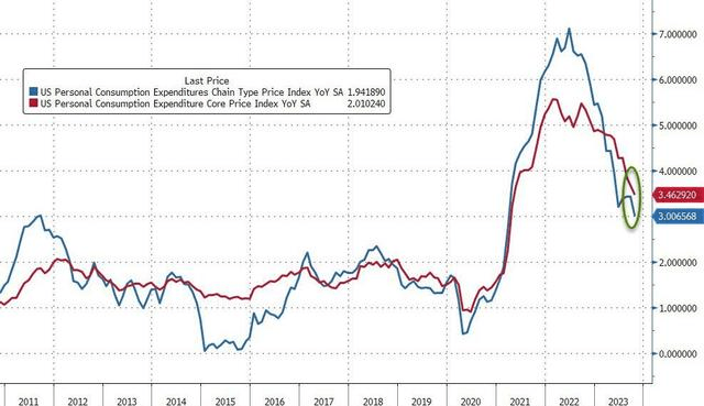 (美国10月份剔除食物和能源后的核心PCE物价指数同比增速,从9月的3.7%回落至3.5%)