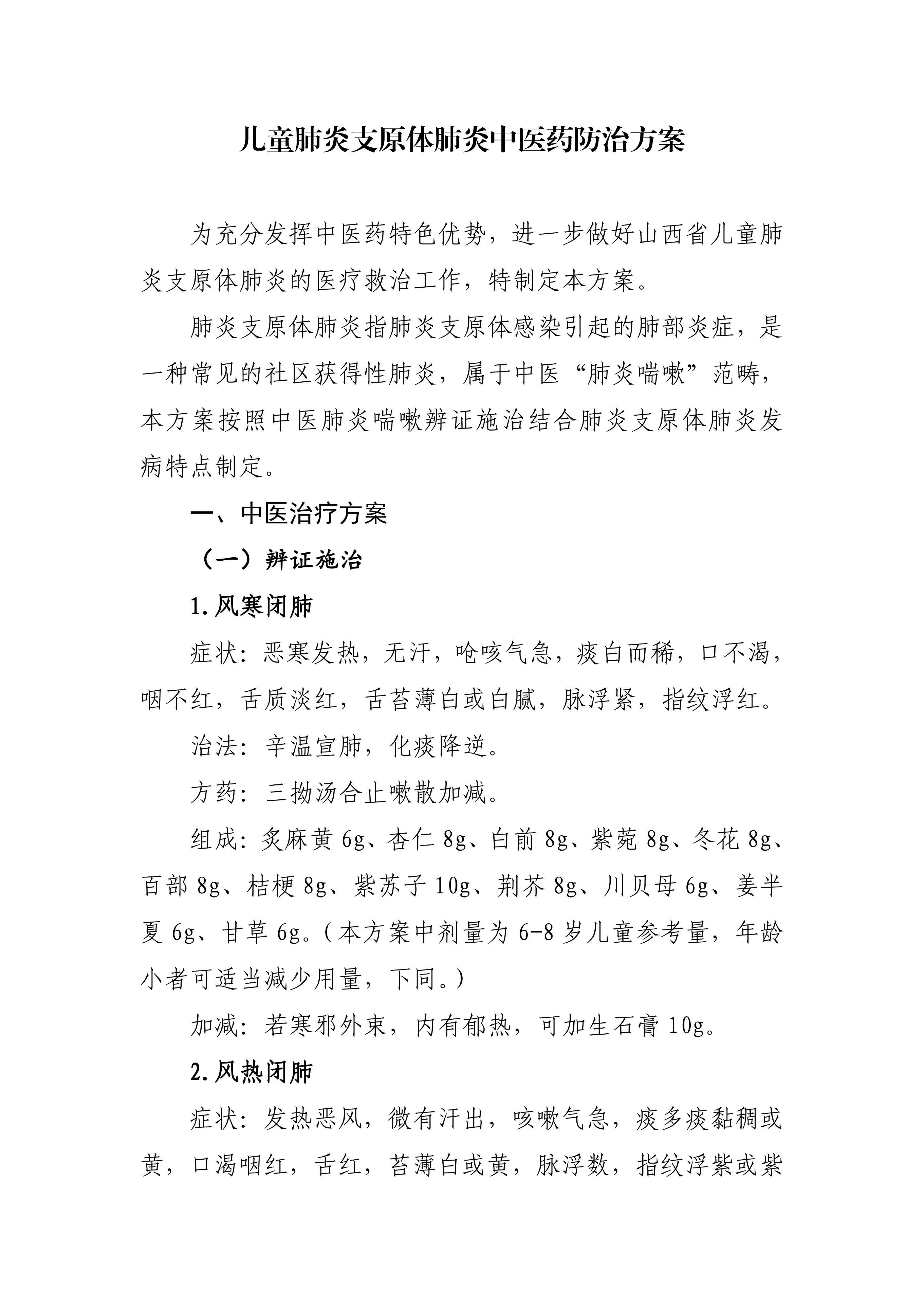近期,随着冬季来临,儿童呼吸道感染性疾病进入高发时期。为进一步发挥中医药特色优势,更好地满足人民群众中医药服务需求,根据国家卫生健康委办公厅《儿童肺炎支原体肺炎诊疗指南(2023年版)》,日前,山西省卫生健康委组织有关专家研究制定了《儿童肺炎支原体肺炎中医药防治方案》和《儿童流行性感冒中医药防治方案》。