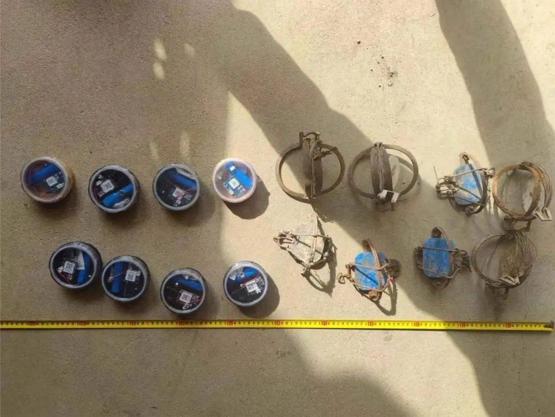 ▲民警缴获的捕兽夹和警报器