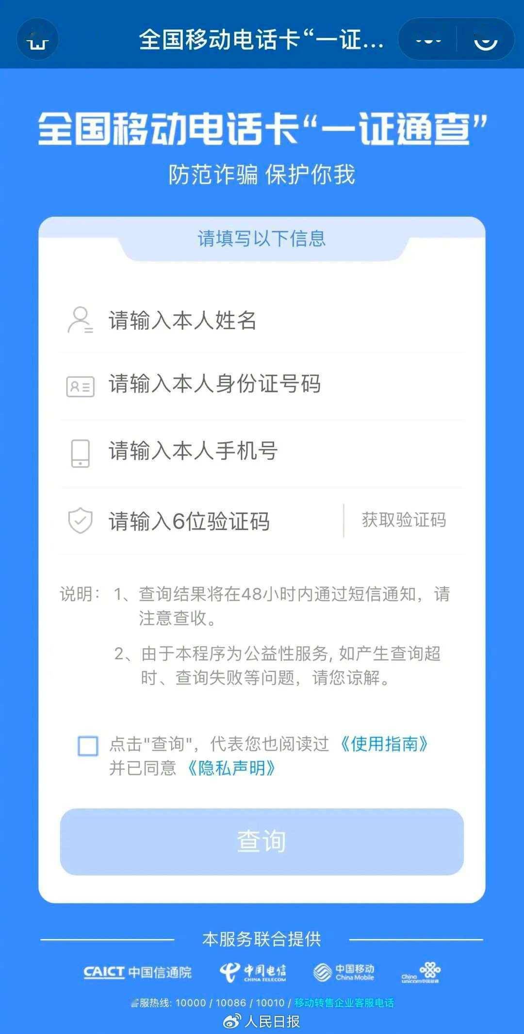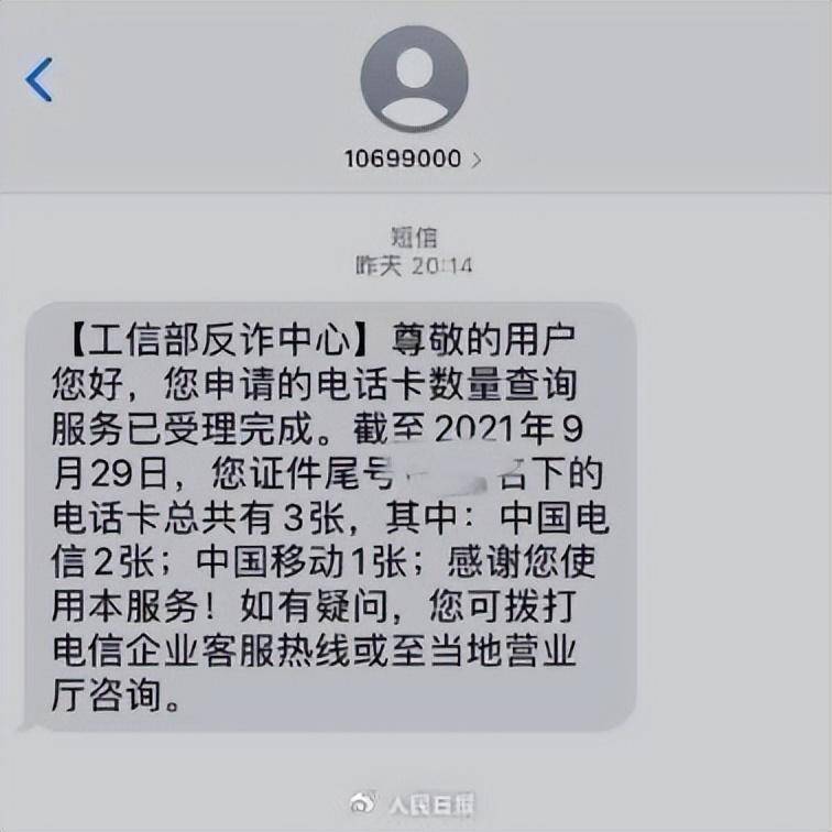 填写姓名、身份证号码和手机号码,核验通过即可预约查询名下所有移动电话卡数量。48小时内,专用短信端口10699000会向预留的手机号码反馈结果!