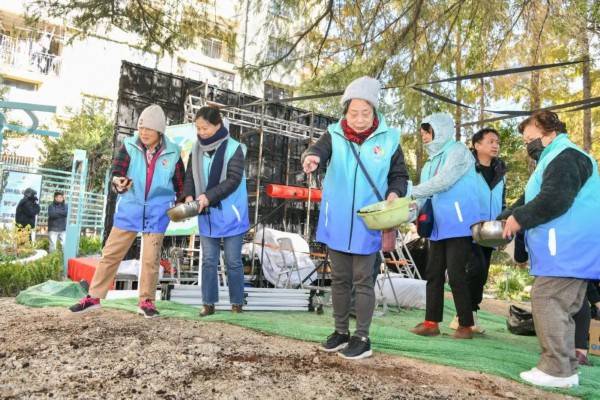 启动仪式结束后,居民们为西园生境花园开园剪彩,并在花园中播种、撒肥。“这里有鸟有鱼、有花有草,在暖阳下能赏美景、聊家常,春暖花开时花园将更美丽!”居住在西园大厦的朱阿姨作为街道护绿团队的一员,期待着生境花园的美好未来。