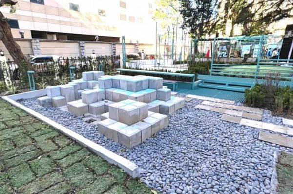 西园生境花园以“云杉绿”为主色调,在入口处能看到志愿者团队制作的生境公约,往前走可通过导览图了解花园各功能区的分布。在“入口休憩区”,居民可在“花园剧场”及“芳香吧台”的休闲座椅处闲坐聊天;在“科普互动区”,能看到用砖块打造的“野鸟地图”艺术装置,俯视可看清地图全貌;登上富有层次感的观鸟台,“秘境探索区”内的草甸花圃、汀步奇石便可尽收眼底。