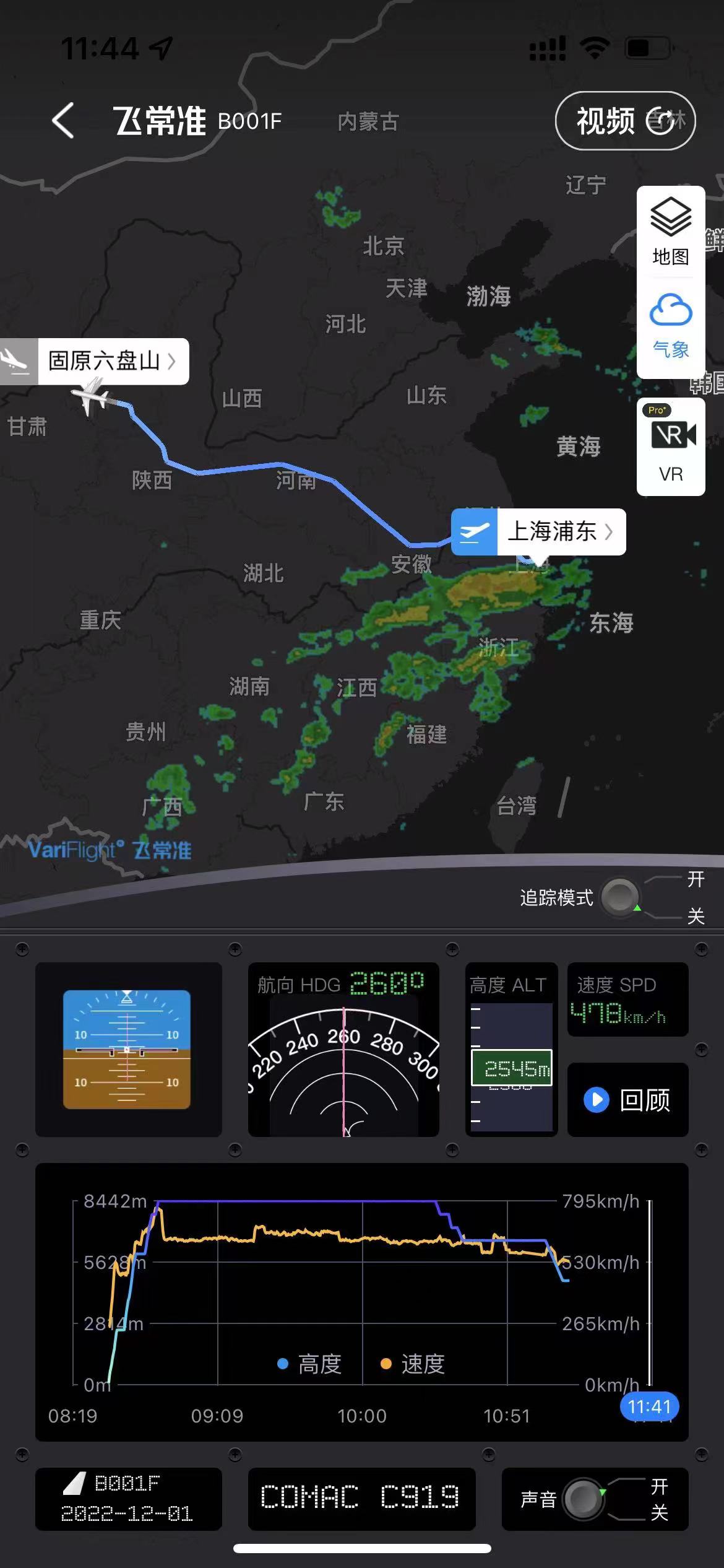 据飞常准APP数据显示,国产大飞机C919(B-001F)于12月1日8:30 从上海浦东机场起飞,11:31到达宁夏固原六盘山机场,全程飞行时长3小时1分钟。这是C919首次飞抵固原六盘山机场,该机场为高原机场(海拔1745米),同时也是多家飞行学院的训练基地,如东方航空西北分公司、西藏航空等。