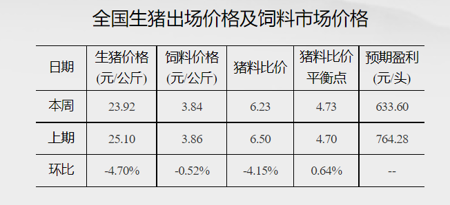 据国家发展改革委价格监测中心,截至11月30日当周全国猪料比价为6.23,环比跌幅4.15%。按目前价格及成本推算,未来生猪养殖头均盈利为633.60元。当周南北生猪市场价格走势分化,周均价环比下滑。周内北方需求依旧偏弱,对猪价利好支撑不足,屠宰企业压价阻力较小,猪价震荡走低;而南方腌腊活动相继开启,对肥猪需求量增加,同时屠宰企业开工率提升,带动猪价持续上涨。随着终端消费有所好转,预计本周猪价或小幅上涨。
