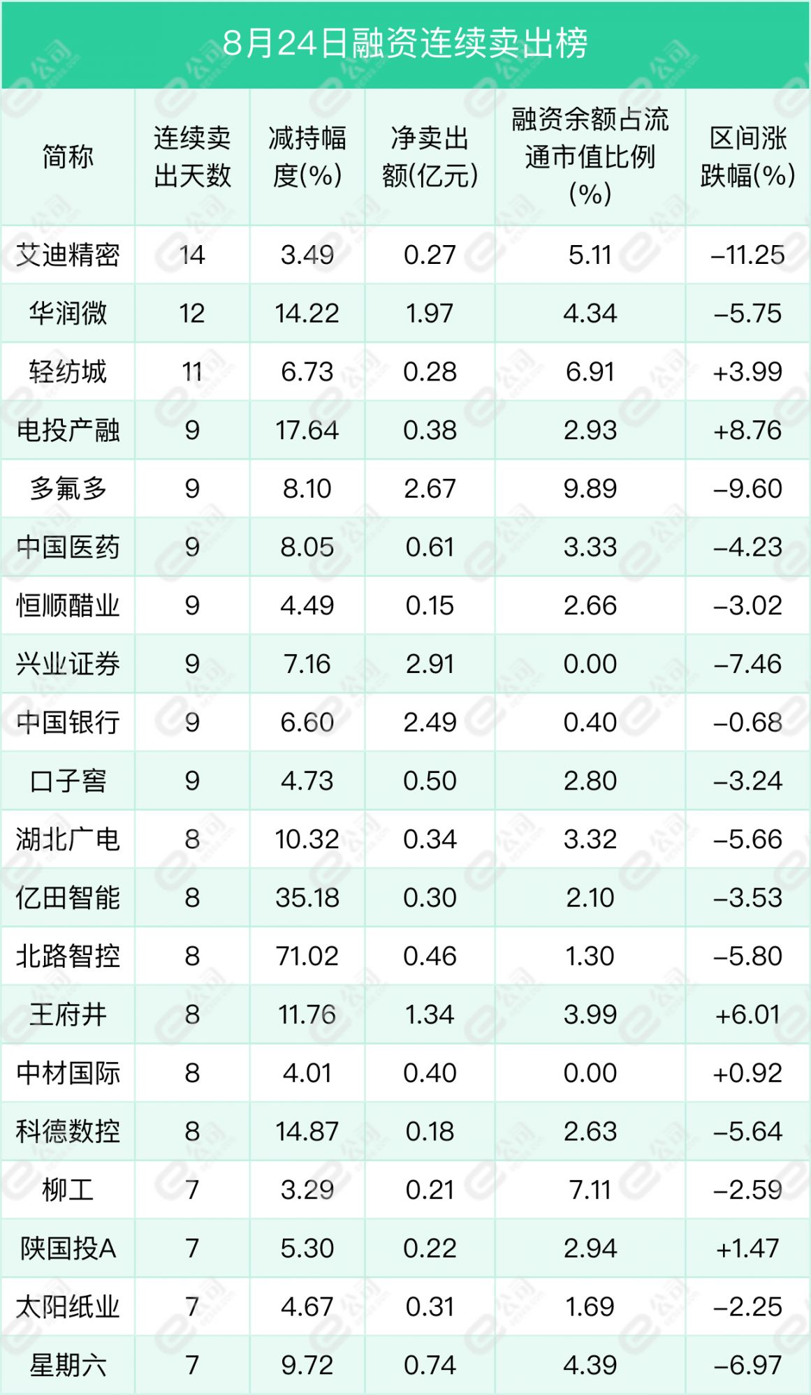 艾迪精密、华润微、轻纺城遭融资连续净卖出天数居前,分别为14天、12天、11天,期间净卖出额分别为0.27亿元、1.97亿元、0.28亿元,期间减持幅度分别为3.49%、14.22%、6.73%。