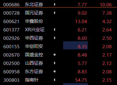 8月25日A股开盘,券商板块个股拉升。9时43分,东北证券涨停,国元证券上涨超7%,华鑫股份、兴业证券、华西证券等不同程度上涨。