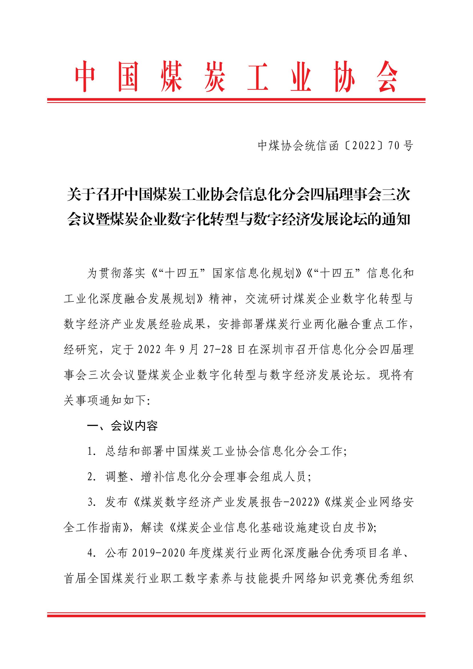 据中国煤炭工业协会8月25日消息,定于9月27日至28日召开中国煤炭工业协会信息化分会四届理事会三次会议暨煤炭企业数字转型与数字经济发展论坛。
