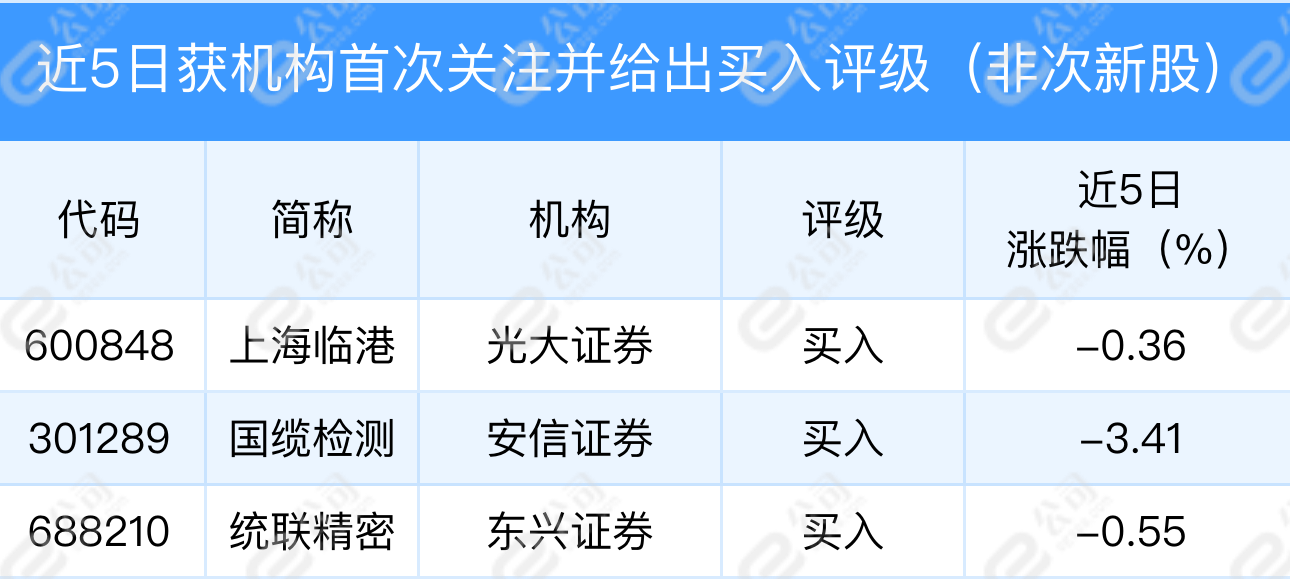 上海临港、国缆检测、统联精密等在5日内获得机构首次关注并给出买入评级。