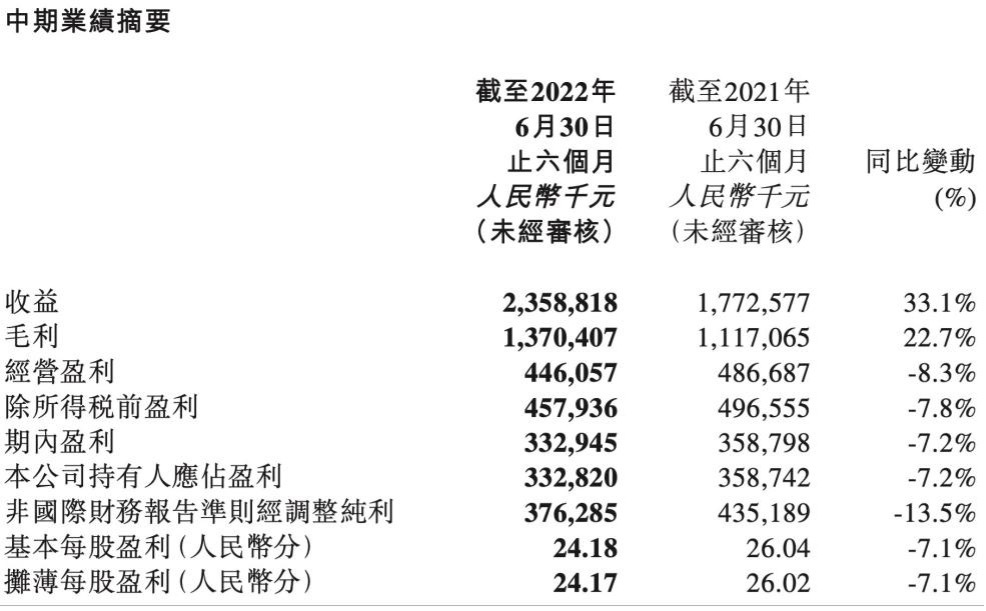 财报显示,2022年上半年泡泡玛特营收23.59亿元,同比增长33.1%;净利润3.33亿元,同比下滑7.2%;非国际财务报告准则经调整净利润为3.76亿元。