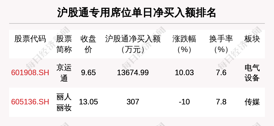 在龙虎榜中,涉及沪股通专用席位的个股有2只,京运通的沪股通专用席位净买入额最大,净买入1.37亿元。